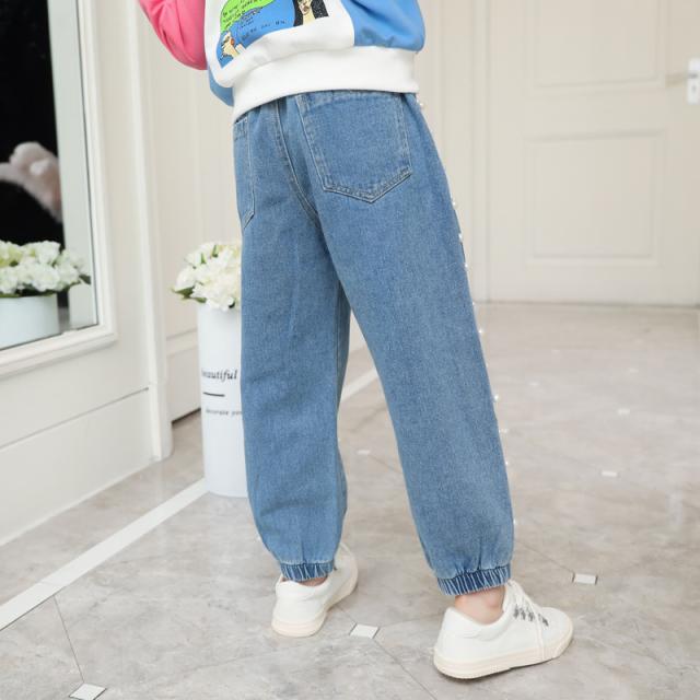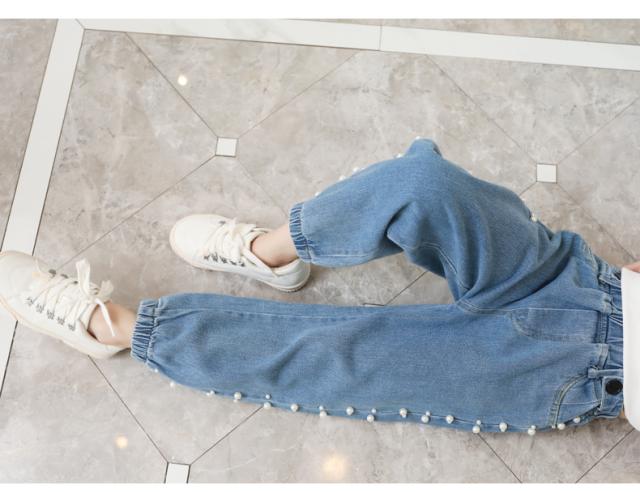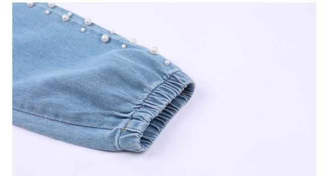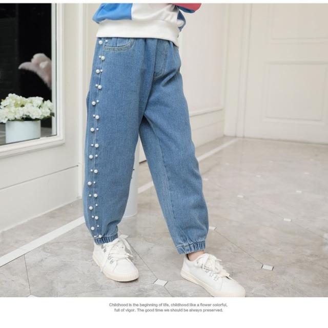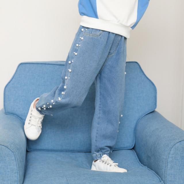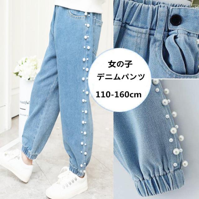 子供服 デニム 長ズボン 春秋 女の子 ビジュー付き パールビーズ カジュアル ロングパンツ 可愛い きれいめ 入学式 新作