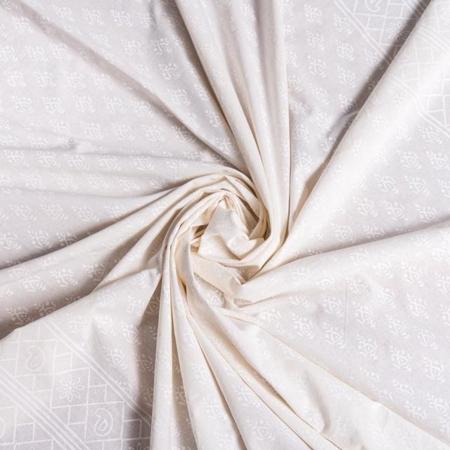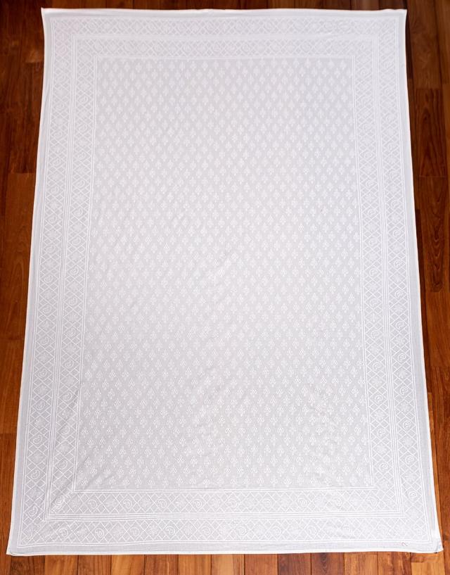 インド職人手作り オールホワイトのボタニカルデザイン インド伝統の木版染め更紗マルチクロス ベッドカバーやソファーカバー パーテーションなどへ / マルチクロス シングル、ベッドカバー、インド綿 布、ソファーカバー、テーブルクロス、バティック、パーテーション、ボタニカル、更紗 インテリ