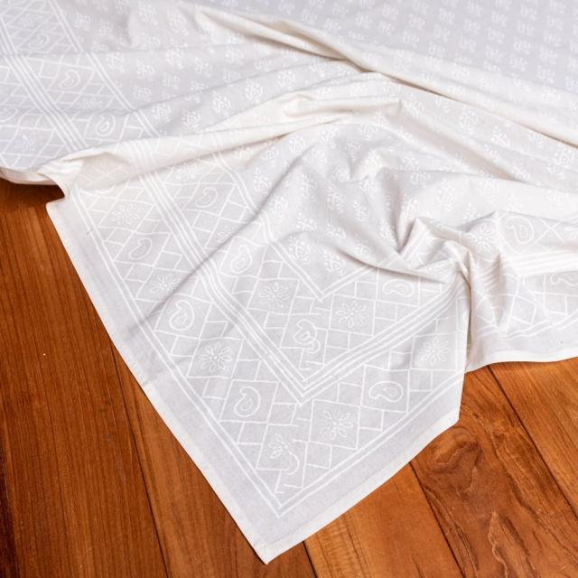 【送料無料】 インド職人手作り オールホワイトのボタニカルデザイン インド伝統の木版染め更紗マルチクロス ベッドカバーやソファーカバー パーテーションなどへ / シングル インド綿 布 アジアン インテリア エスニック