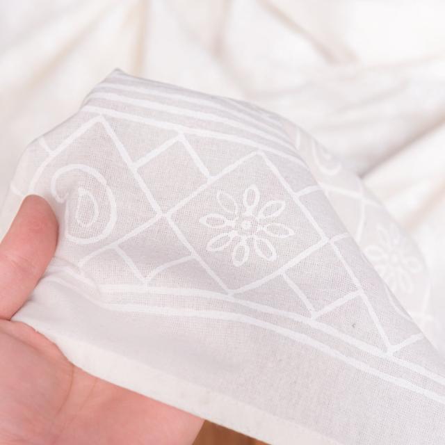 とってもかわいいマルチクロスがジャイプルからやってきました。白×白の、上品な組み合わせがとても魅力的。職人さんが全て手作りしており、インドらしい木版染めによるぬくもりを感じる、インド綿100%のファブリックです。