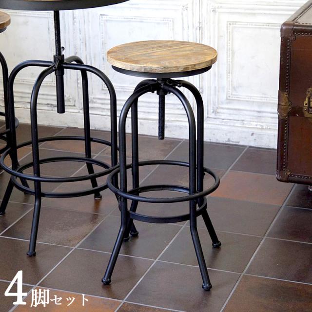 IDR-A400 4脚セット カウンターチェア ハイチェア 昇降タイプ ねじ式 ブラック塗装 幅49×奥行き49×高さ72〜79cm