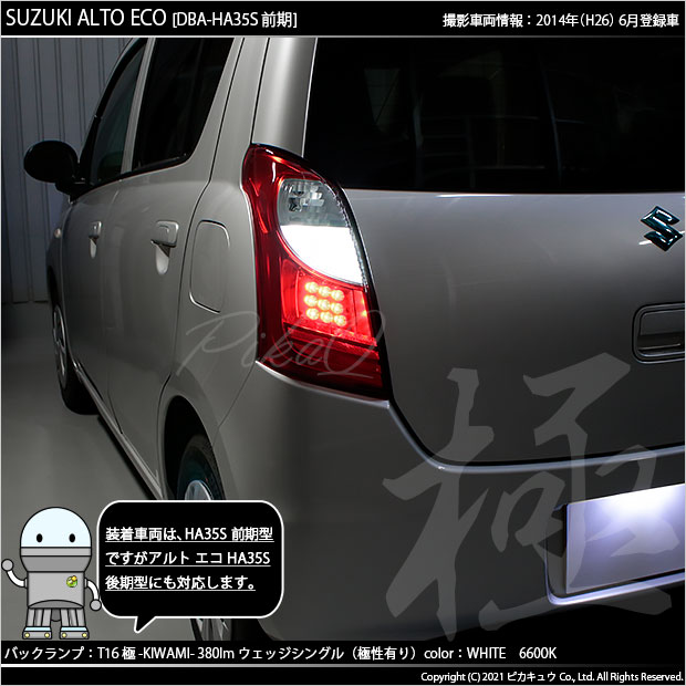 ピカキュウ,LED専門店,LEDバルブ,国産DC12V車,LED,SMD,T16シングル,W16W,バックランプ,ホワイト,全光束380lm,ハイブリッド車対応,極,KIWAMI,きわみ,スズキ,アルトエコ,SUZUKI,ALTO ECO,HA35S,前期