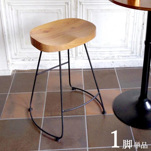 お尻にフィットする形状になった天然木座面と、細いアイアンフレームが特徴のシンプルデザインなバーチェア。