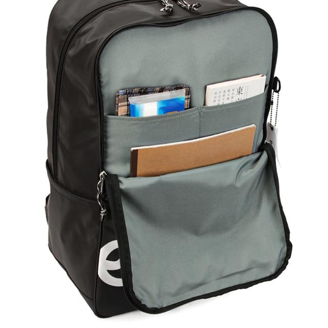 フロントポケットは、B4サイズまで対応。2つのオープンポケット付きで、散らばりやすい小物の収納に便利です。