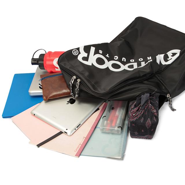 大きく開くメインルームは出し入れのしやすさいデザインに。B4サイズのファイルが収まり、広幅のマチ仕様でたっぷり荷物が収まります。