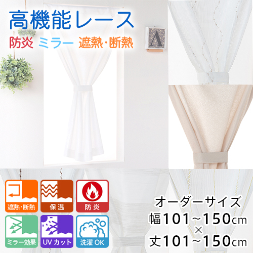 カーテン カフェカーテン レース オーダー 防炎 小窓用 高機能 省エネ 遮熱 断熱 ミラー レースカフェカーテン 幅101-150cm 丈101-150cm