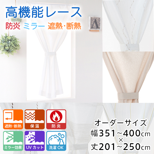 カーテン カフェカーテン レース オーダー 防炎 小窓用 高機能 省エネ 遮熱 断熱 ミラー レースカフェカーテン 幅351-400cm 丈201-250cm