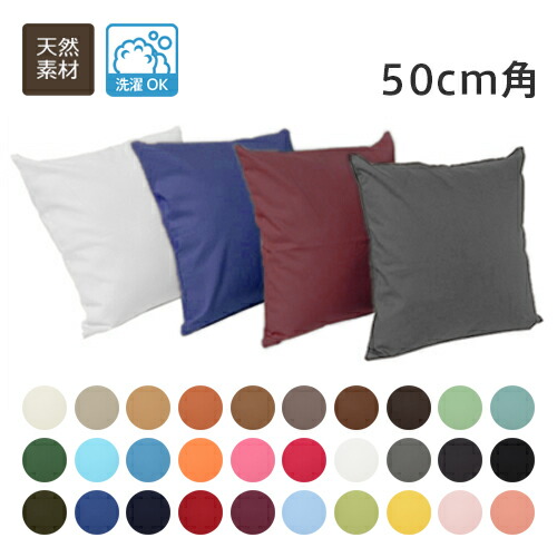 クッションカバー 50cm角 オックス織り 無地 シンプル おしゃれ 綿100% コットン 天然素材 洗える 選べる30色 幅50cm×丈50cm