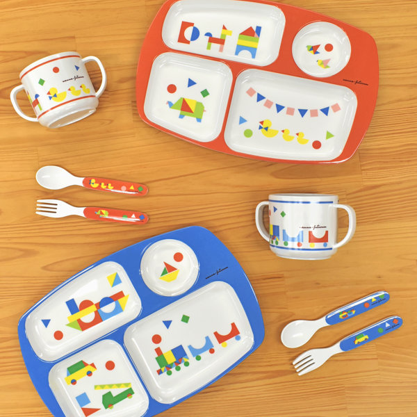 赤ちゃんのファーストトイとしておなじみの「積み木」がデザインされた食器シリーズ。見た目の色の綺麗さが子どもの関心を引き寄せ、積み木の色々な形が造形力・創造力を引き出してくれます。同じシリーズで揃えて使えば、食卓が華やかになり、楽しいご飯タイムになっておすすめです。