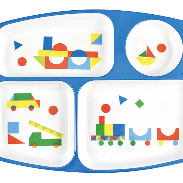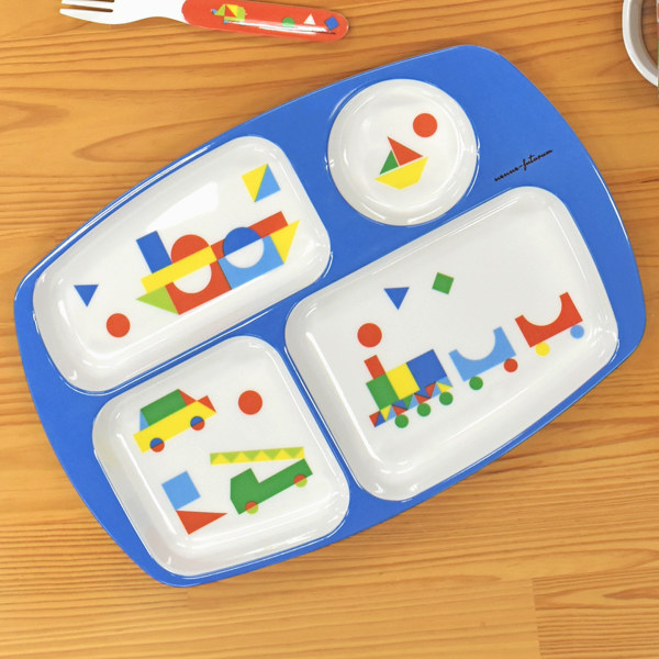 ●子どもの関心を引き寄せる「積み木」デザインのメラミンプレートです。