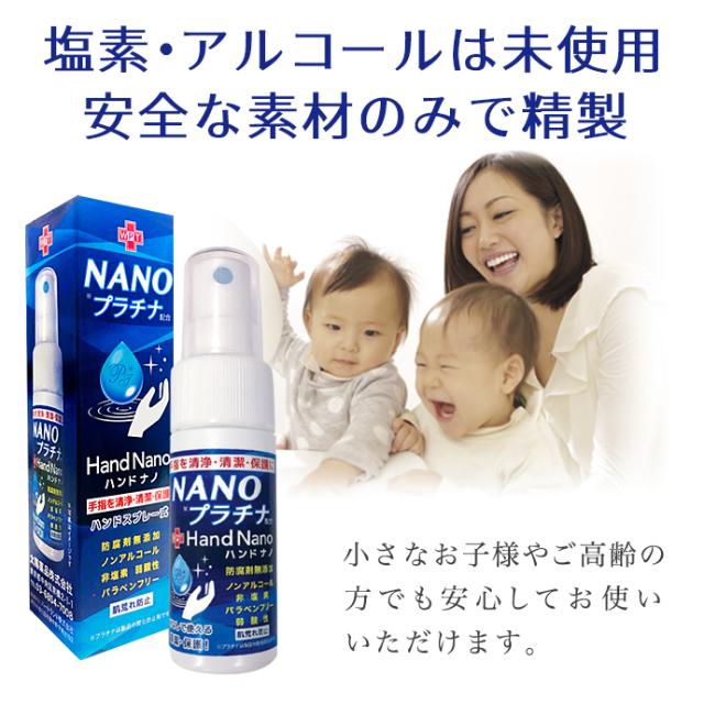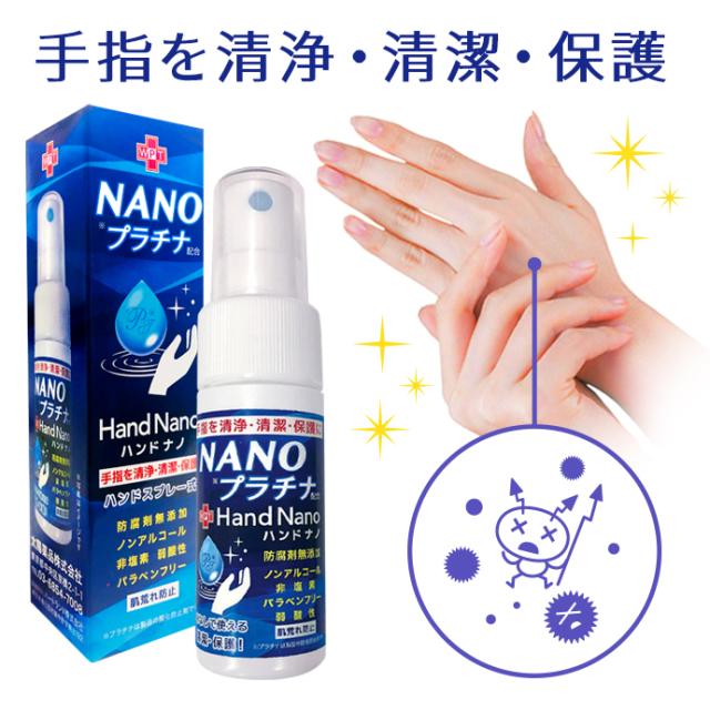 日本製 NANOプラチナ Hand Nano ハンドナノ30 防腐剤無添加 ノンアルコール 非塩素 肌荒れを防ぐ 手指 清潔 保護 特許 プラチナ シールド技術 安心安全 保湿 ハンドスプレー式