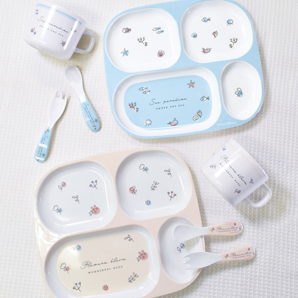 お子さまが成長しても使いやすいデザインの食器シリーズ。海・お花をモチーフとしたデザインで、子どもも大人もながく楽しむことができます。淡いパステルカラーがインテリアに馴染みやすく、毎日の食卓に使いやすいです。同じシリーズで揃えて使えば、食卓が華やかになり、楽しいご飯タイムになっておすすめです。