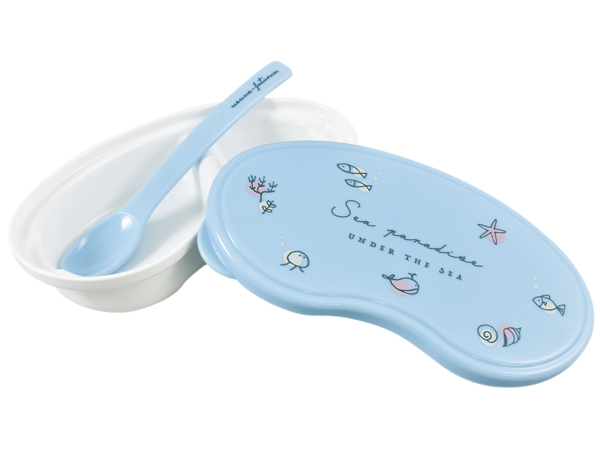 淡いパステルカラーに海をイメージしたがデザインが描かれたされた離乳食容器です。お出かけ先で食事をするときに便利です。持ち運びやすいので、ピクニックやキャンプなどのアウトドアにもおすすめです。