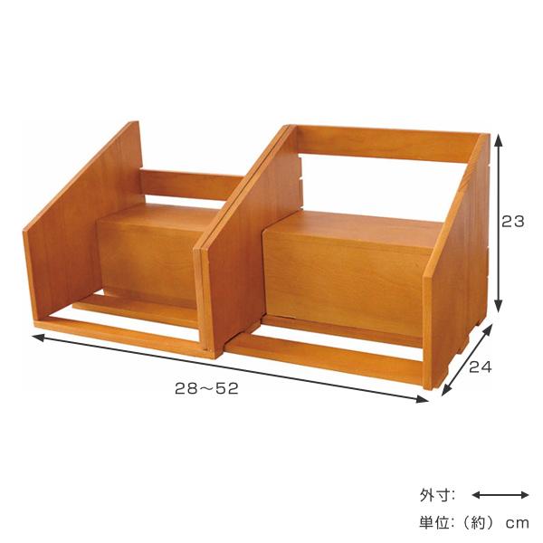 ブックスタンド スライド式 2段 本棚 ( 卓上 木製 伸縮 ラック ブックエンド ナチュラル スライド 本立て 天然木 マガジンラック 漫画 雑誌 単行本 文庫本 コミック おしゃれ )