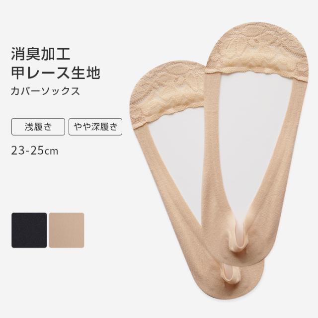 カバーソックス パンプスイン フットカバー 甲レース生地 レース 浅め 深め すべり止め付き 靴下 消臭加工 脱げない 薄い *2-6t *y3-12t
