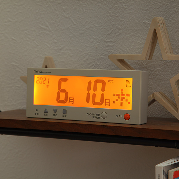 今日の日付だけシンプルに表示。デジタルカレンダーの電波時計