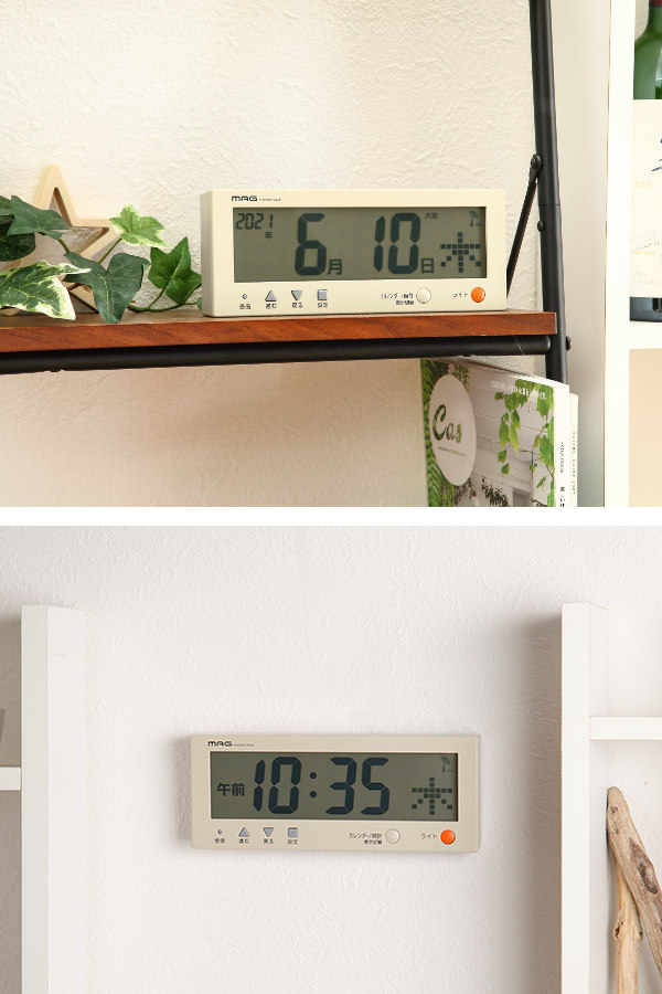 電波時計 置き時計 電波カレンダー こよみん 電波時計 置き時計( デジタル 時計 インテリア 雑貨 カレンダー 置き型 卓上 壁掛け 置き掛け両用 見やすい ライト付き 寝室 リビング )