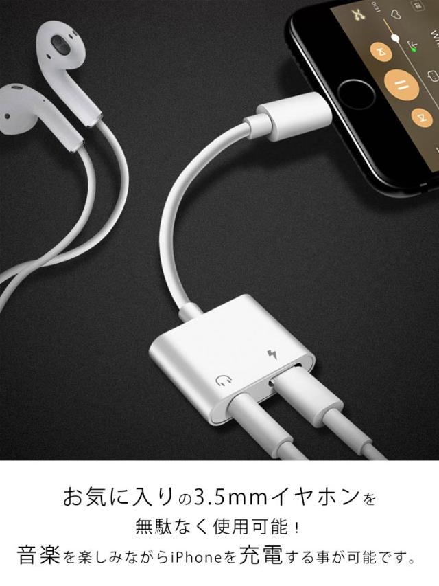 2in1 iPhone 変換ケーブル iPad iPhone 3.5mm イヤホン 変換ケーブル ライトニング アダプター コネクター 同時充電 Lighting ケーブル 充電 音楽再生 iPhone11 iPhone11 Pro Max iPhoneXS iPhone XR iPhone X iOS対応 送料無料