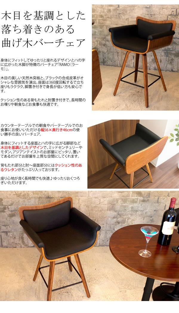 身体にフィットしてゆったりと座れるデザインとハの字に広がった木脚が特徴のバーチェア。