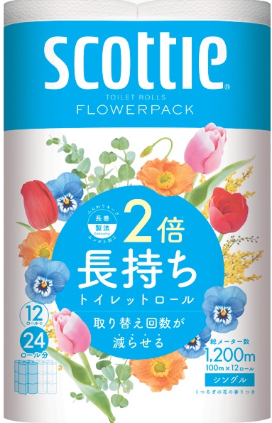 日本製紙クレシア スコッティ トイレットペーパー フラワーパック 2倍巻き 12ロール(100mシングル) 4パック入り 送料無料