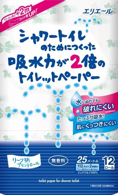 大王製紙 エリエール シャワートイレのためにつくった吸水力2倍のトイレットペーパー 12ロール ダブル 6パック入り まとめ買い 送料無料