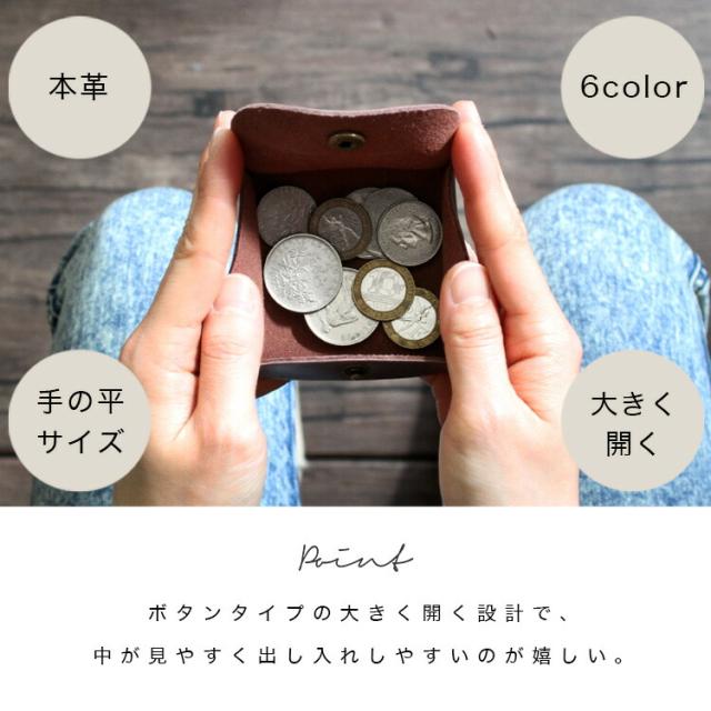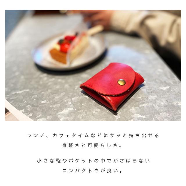 牛革を使用してハンドメイドで製作したコインケースです。手触りのいい柔らかいソフトレザーの1枚革で仕上げた手作りならではの風合いがあります。ボタンを開けるとガバっと大きく開くので中身取り出し易く、一目で中身が確認できます。小銭はもちろん、錠剤やコスメなど小物を収納しておしゃれに持ち運ぶことができます。
