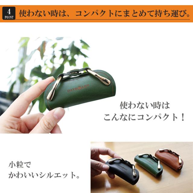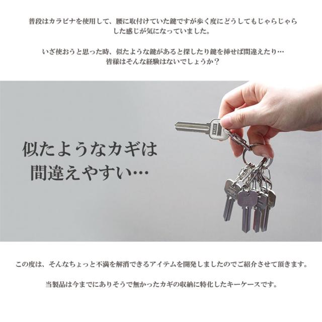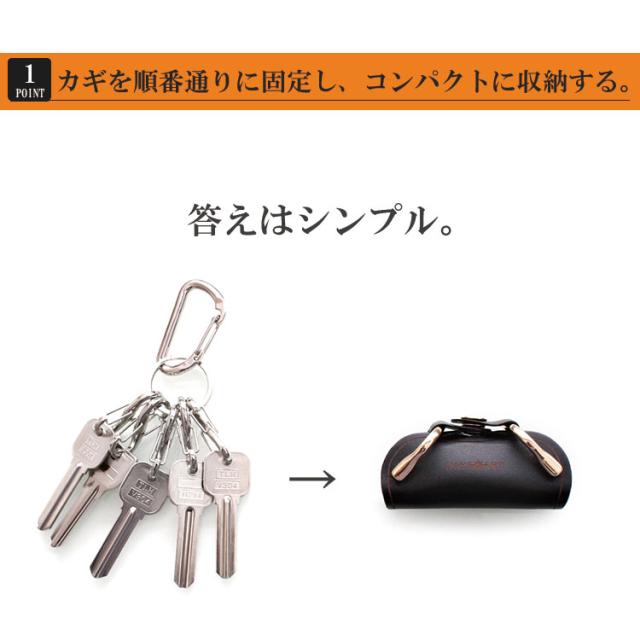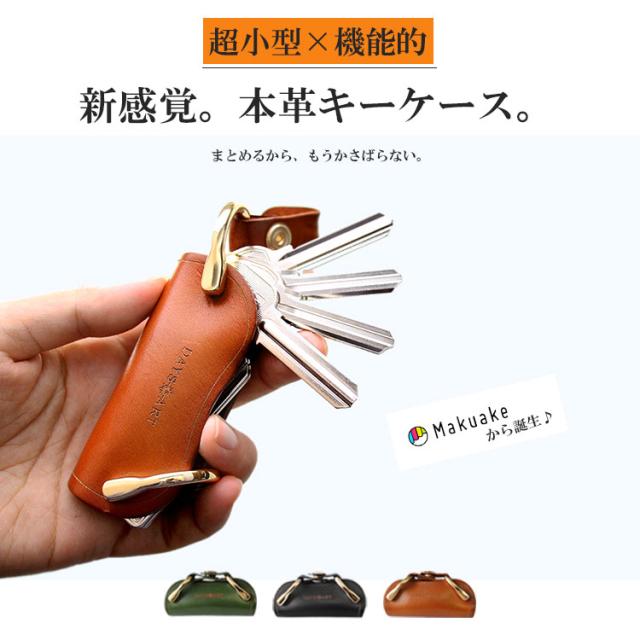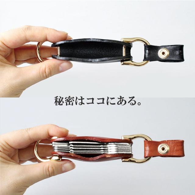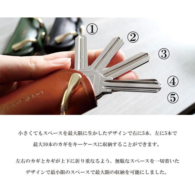 左右に5本ずつ最大で10本の鍵を収納できる新しい形のキーケースです。クラウドファウンディングMakuakeで大好評いただきました。小粒でかわいいシルエットにしっかりとした存在感。スペースを最大限に生かしたデザインでたくさんの鍵を収納ができるのに使わないときはとてもコンパクト。弾力性があり、傷に強く厚みのあるオーストラリア産レザーを使用しており、厚手の本革でしっかりとカギを守ってくれます。