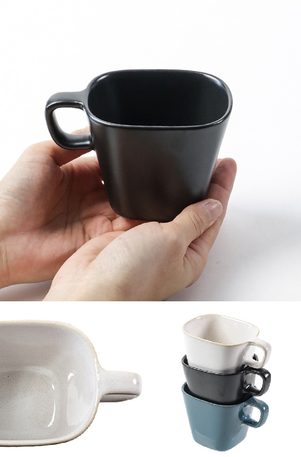 スクエア型がスタイリッシュな無地デザインの磁器製マグカップです。飾り気のない無垢なテイストで、何気ない朝食やコーヒータイムもさらっとおしゃれに決まります。