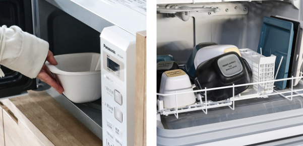 電子レンジで気軽に温め直しができます。また、食洗機に対応しているので、後片付けもラクラクで、毎日遣いに最適です。