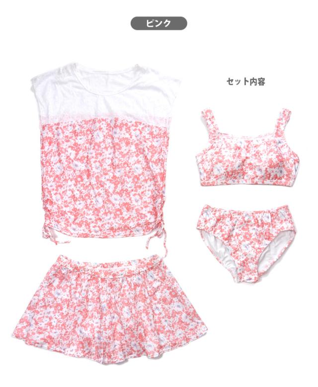 【送料無料】PRIVATE LABEL トップス付き花柄ビキニ水着4点セット 9M 11L 13L プライベートレーベル 35650321 No.sw2878