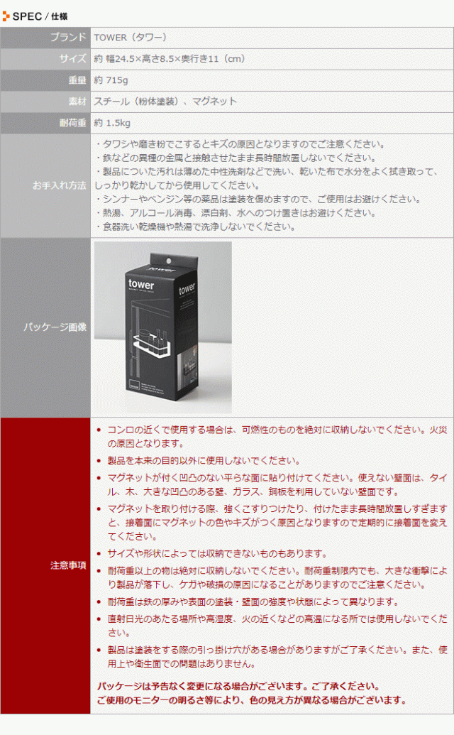 マグネットラック tower マグネット キッチン ラック 調味料 台所 シンク周り 収納 スリム おしゃれ