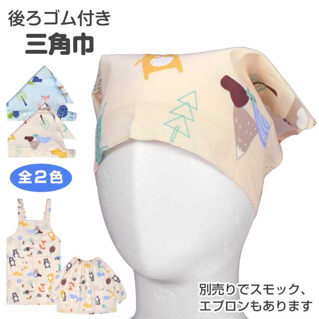 三角巾 ゴム付 子供 給食着 アニマル柄 綿100%ベージュ