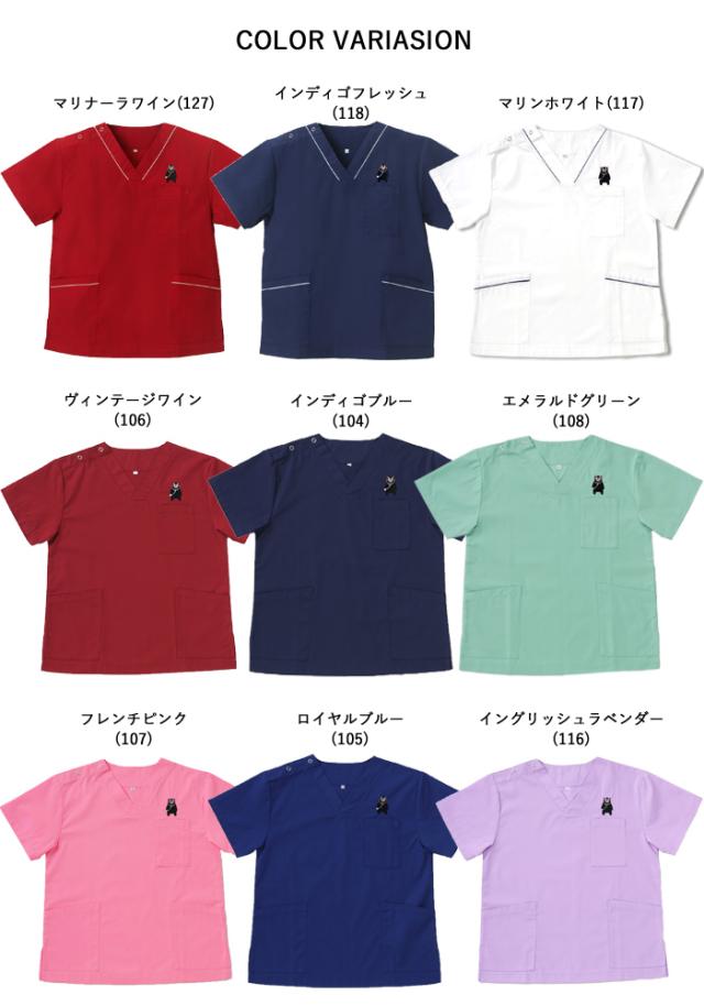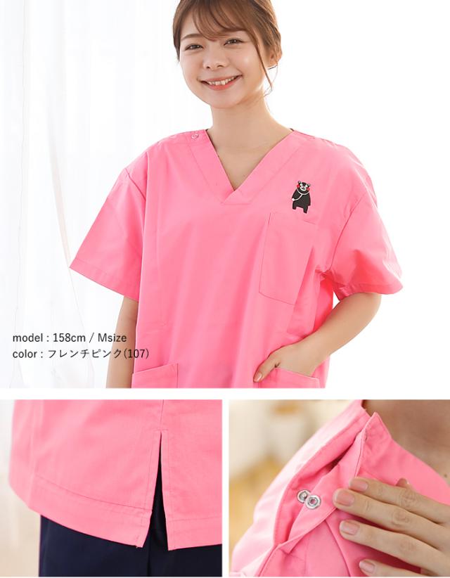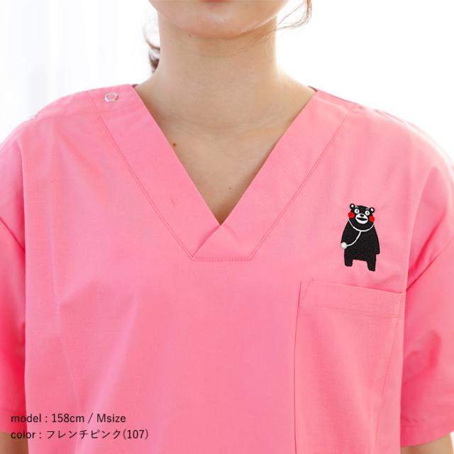 スクラブ 上着 くまモン 介護 看護 幼稚園 保育園 ナース 医療現場 介護現場 メンズ レディース 男女兼用 (D-DS-20011K-DS) 病院 看護師 介護士 ドクター ナース ユニフォーム SS/S/M/L/LL/3L 子供たちにも大人気、くまモンの刺しゅう入りスクラブ agesugi_snk