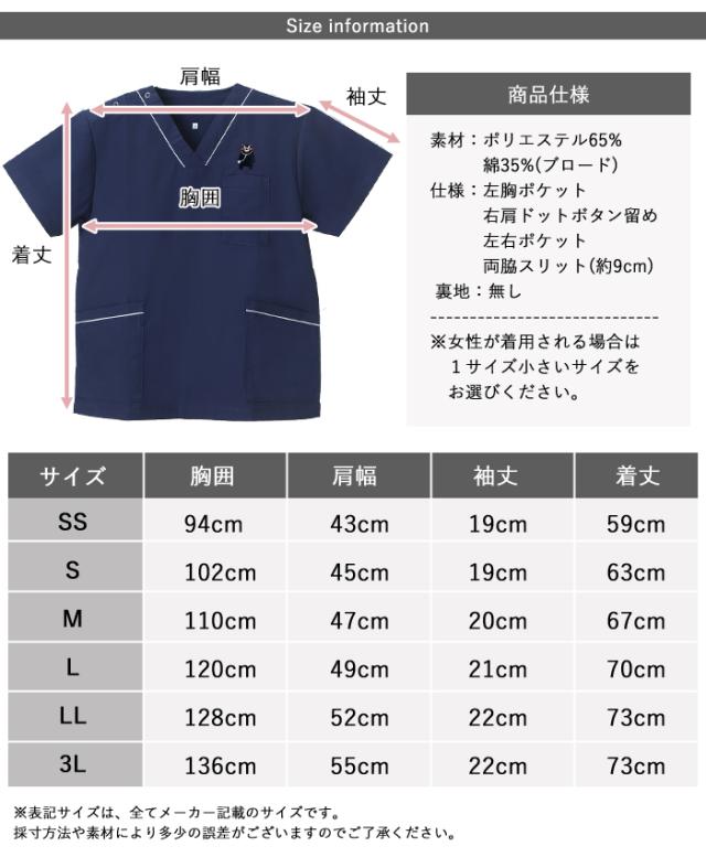 人気キャラクラーの「くまモン」の可愛い刺繍入り。 看護や介護の現場等、幅広い場面で活躍するスクラブ。 男女問わず使用できるカラーと、 SS〜3Lまでの豊富なサイズ展開。 ゆったりとしたサイズ感で動きやすく、 ユニフォームや制服としても着用していただけます。 ■サイズ:SS〜3L ※サイズにつきましてはメーカー表記サイズとなります。 詳細は商品画像をご確認下さい。 ■素材: ポリエステル65% 綿35%(ブロード) ■仕様:左胸ポケット、右肩ドットボタン留め、左右ポケット、両脇スリット(約9cm) ■裏地:無し <注意事項> ※女性が着用される場合は1サイズ小さいサイズをお選び下さい。 ※お客様のご覧になられますパソコン機器及びモニタなどの違いにより、実際の商品素材の色と相違する場合もありますのでご了承下さい。【2103】 |