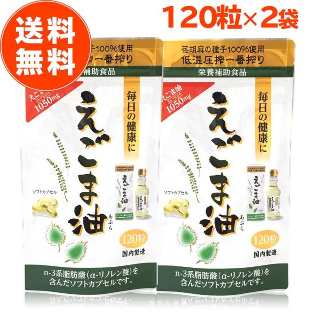 えごま油 サプリ 朝日 120粒 2袋 セット カプセル エゴマ油 えごま えごまオイル オメガ3 油 脂肪酸 健康 食品 国内製造 低温圧搾 無添加 荏胡麻油 コールドプレス おすすめ 送料無料 朝日えごま油