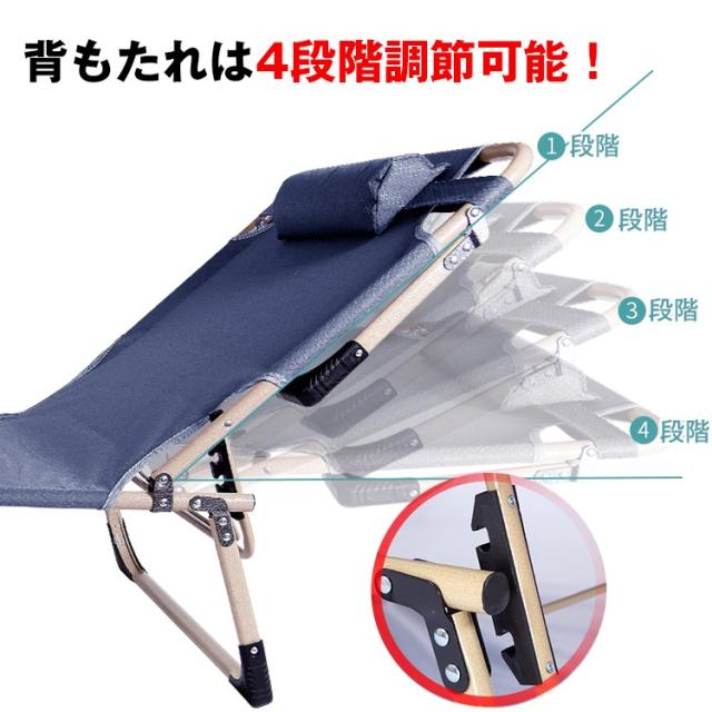 折りたたみベット マット付き アウトドア キャンプ 枕付き レジャー 椅子 チェアー デイキャンプ 4段階調節可能 防災 災害