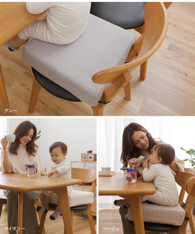 くもの形のぽこぽこキルトが大人気のイブルの新商品!お子様の成長に合わせて高さ調整ができるクッション♪洗えて便利な綿100%キッズ用のお食事クッション