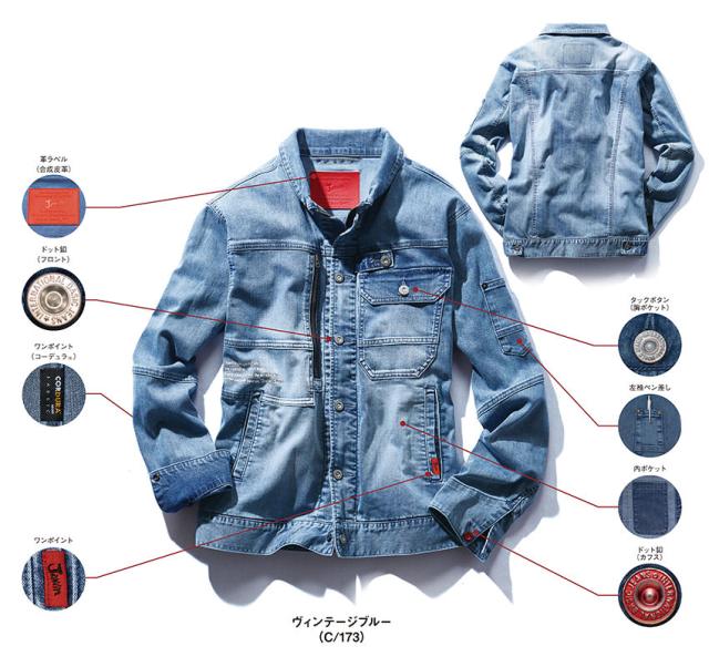 作業服 デニム 自重堂 Jawin 接触冷感コーデュラストレッチデニム長袖ジャンパー 57000 作業着 春夏
