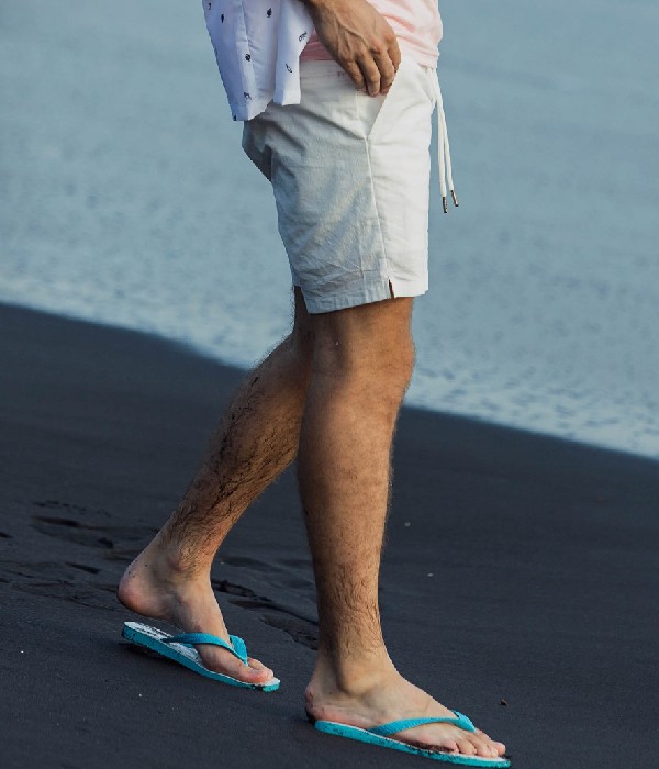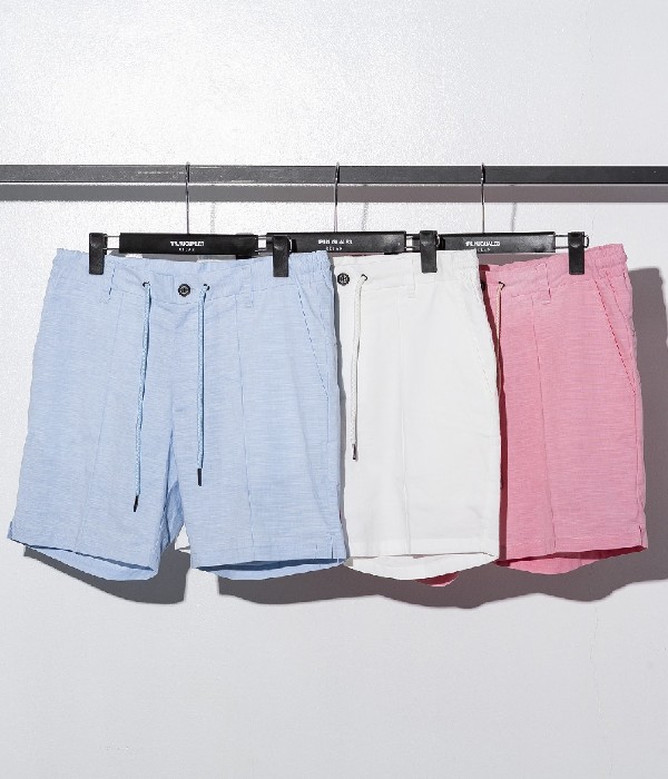 さらりとした軽やかな着心地が魅力のスラブ生地で仕上げたハーフパンツ。