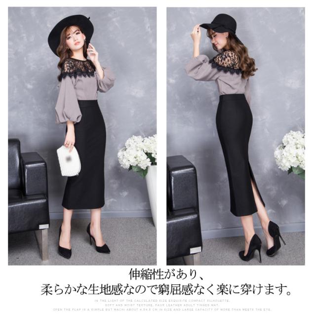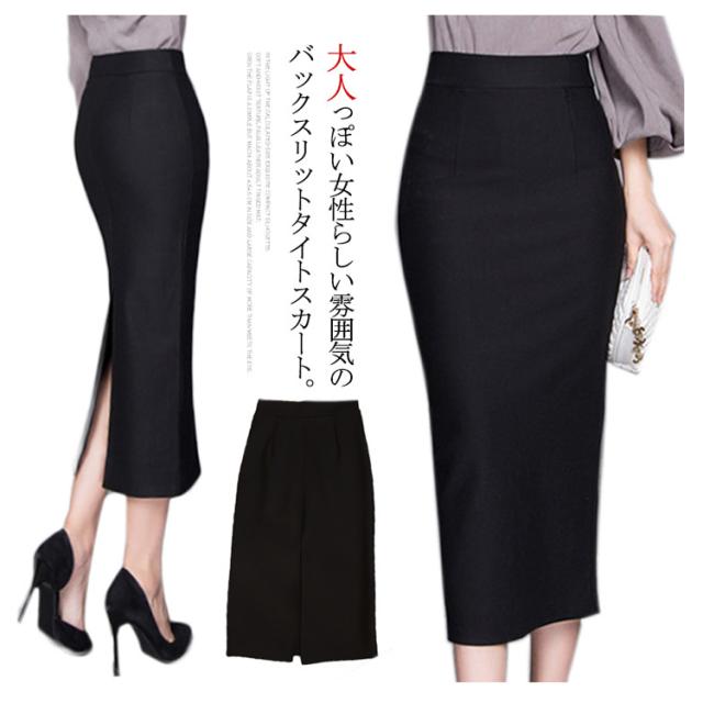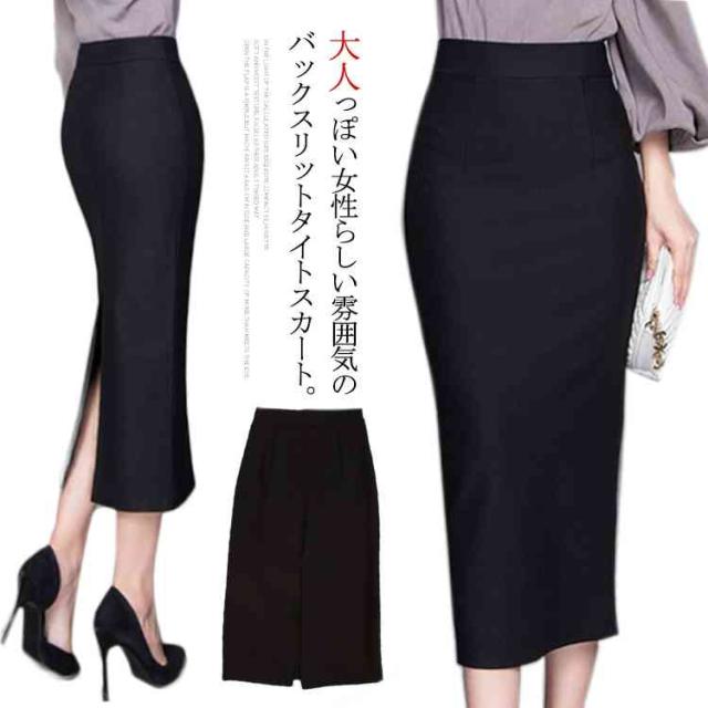ペンシルスカート ミモレ丈 ロングスカート タイト 無地 バックスリット