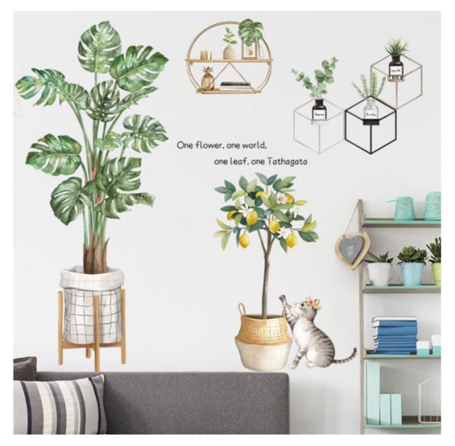 送料無料 ウォールステッカー 植物 壁飾り ガラスステッカー 木 花 緑 ウォール ウィンドウ 窓 壁紙 飾り ドア DIY 式 ウォールステッカー