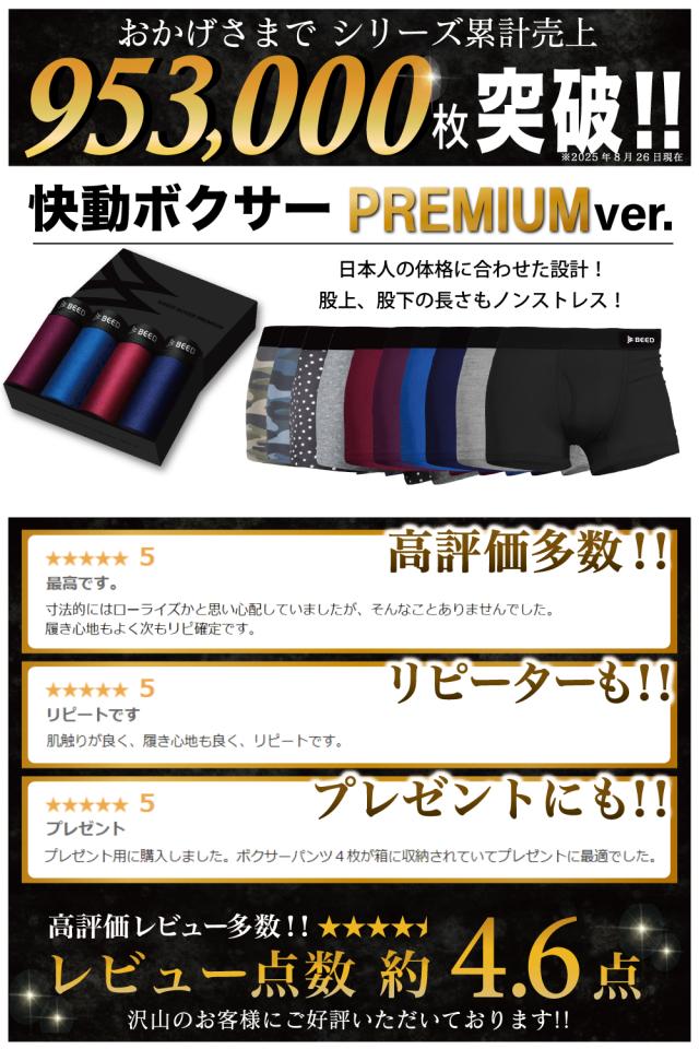 ボクサーパンツ メンズ 4枚セット 前開き 快動ボクサー 累計92万枚 PREMIUM ボクサーブリーフ 4枚組 肌着 下着 男性用 BEED 無地 パンツ メンズ まとめ買い ギフト ラッピング プレゼント ブラック グレー ネイビー パープル レッド 送料無料