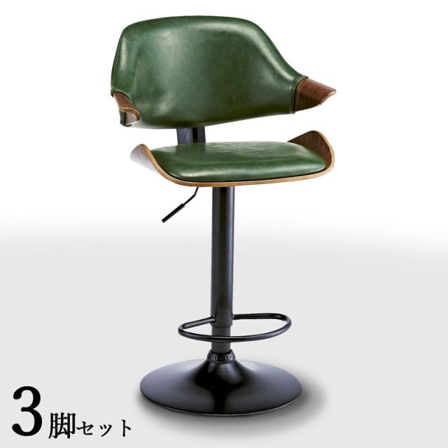 GC-BC 3脚セット カウンターチェア ハイチェア 回転&昇降タイプ 油圧式 グリーン色シート 全3色 幅56 奥行き50 高さ91〜112 座面高 62〜83cm
