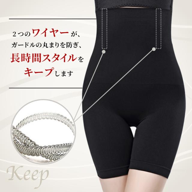 2つのワイヤーがガードルの丸まりを防ぎ、長時間スタイルをキープします。
