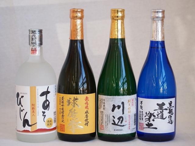 厳選熊本県米焼酎4本セット(あそびじん阿蘇美人 純米焼酎 黒麹仕込芋焼酎 王道楽土 純米焼酎 川辺 無濾過球磨焼酎 球磨拳) 720ml×4本