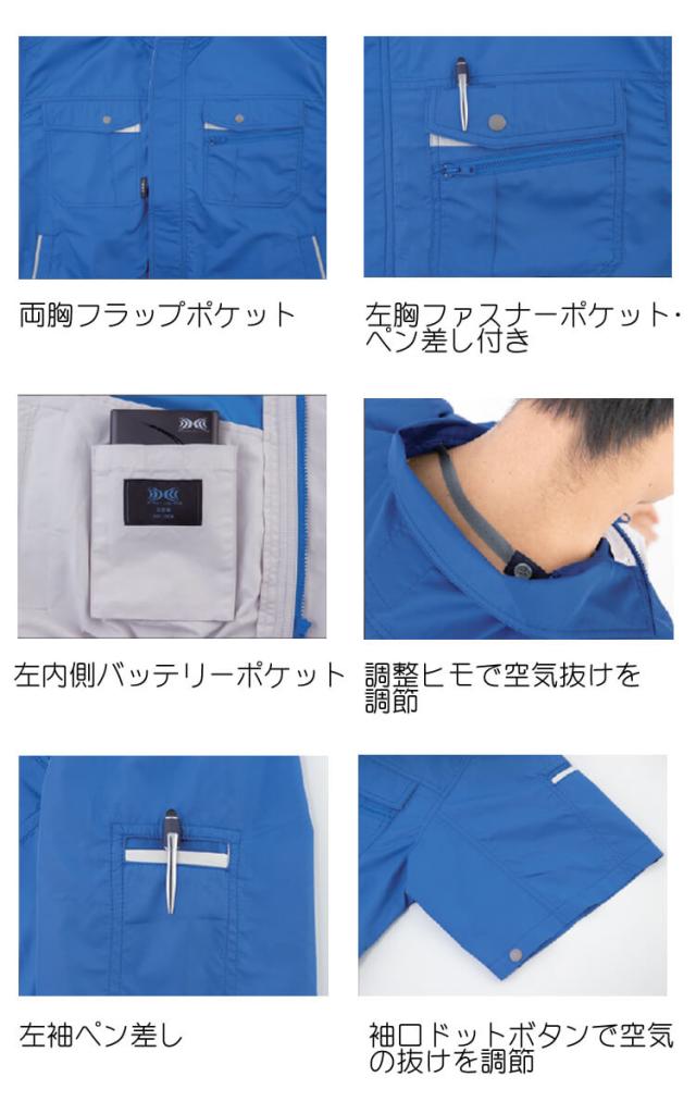 空調服 ジーベック XEBEC 半袖ブルゾン(ファンなし) XE98022 サイドファン