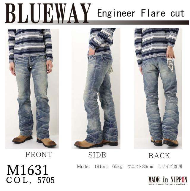 BLUEWAY ブルーウェイ M1631 ジーンズ ブーツカット エンジニア フレアー デニム 加工 シワ 5705 5761 日本製 メンズ パンツ こだわり ジーンズ