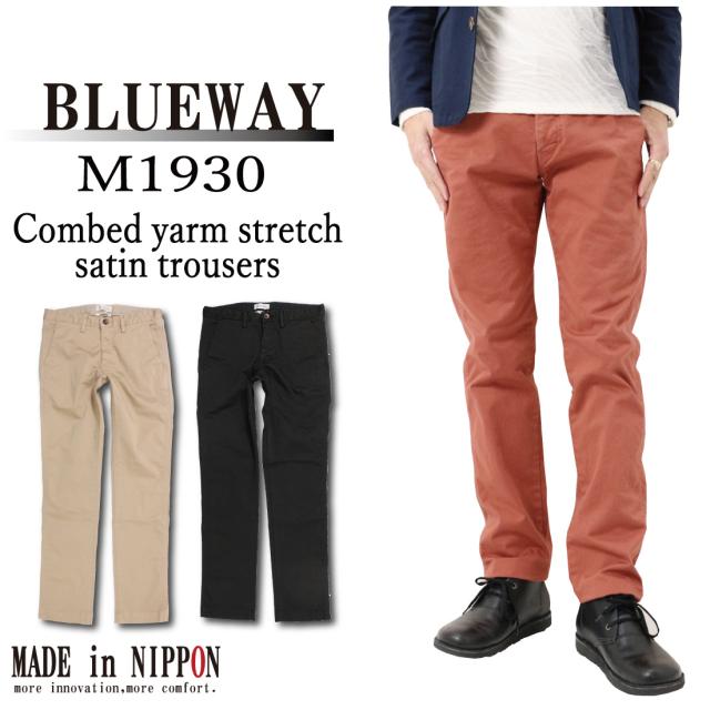BLUEWAY ブルーウェイ M1930 トラウザー パンツ ストレッチ テーパード サテン 16 51 65 メンズ 日本製 こだわりジーンズ