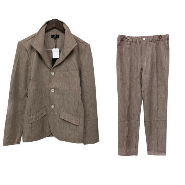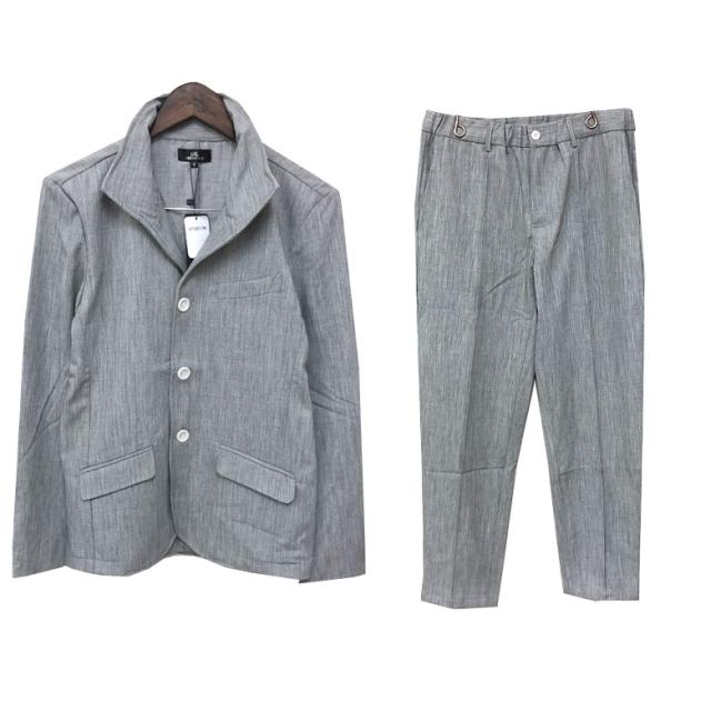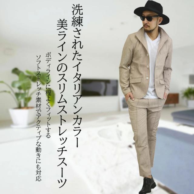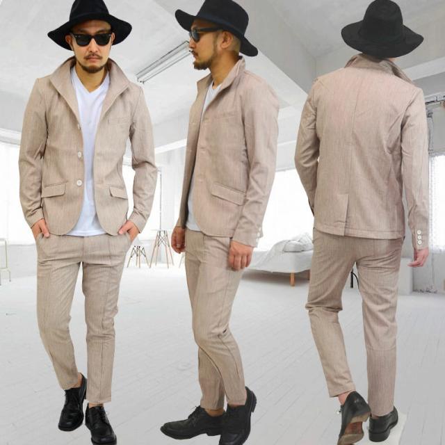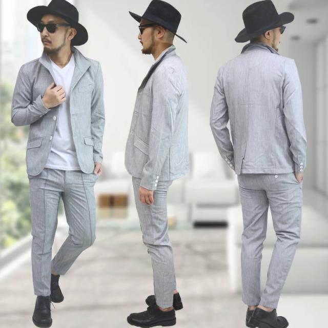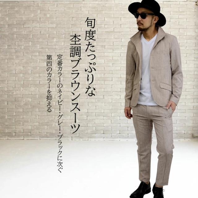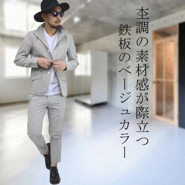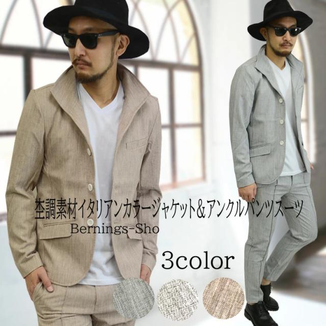 【閉店セール】杢調素材イタリアンカラー セットアップスーツ 1757-62ab メンズ ジャケメントパンツ ボトムス きれいめ カジュアル M L XL ジャケット&パンツ メンズ ウィンドペン 羽織 きれいめ 上下 襟ワイヤー付き