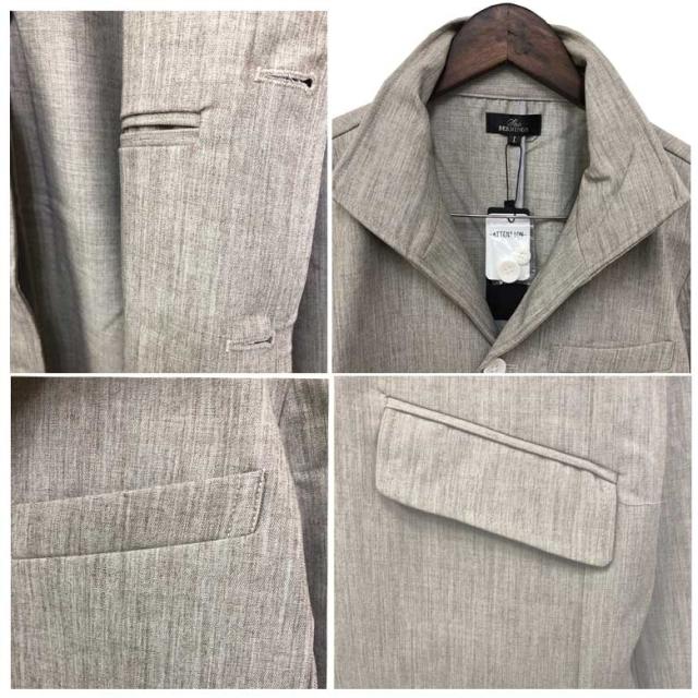 襟はイタリアンカラーを採用し、内蔵のワイヤーで寝かせたり立たせたり